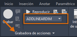 En la cinta de opciones, haga clic en la ficha Administrar > grupo Grabadora de acciones. En la lista desplegable, elija ADDLINEARDIM.