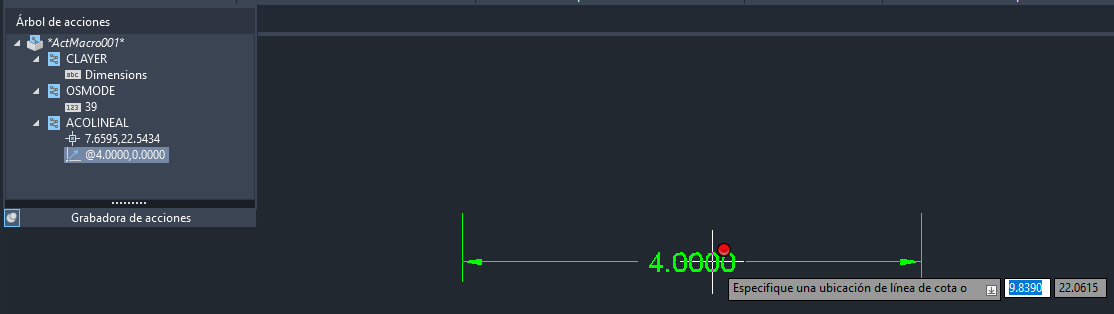 En los pasos siguientes, se describe cómo reproducir la macro de acciones ADDLINEARDIM que se grabó anteriormente: