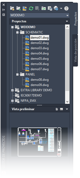 Utilice el Gestor de proyectos para crear y añadir dibujos a un proyecto. Buscar
