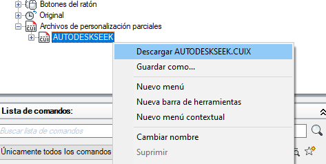 Los archivos CUIx parciales cargados en el archivo CUIx principal se muestran bajo el nodo Archivos de personalización parciales.