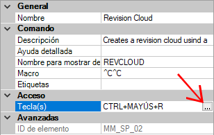 - En el panel Propiedades, haga clic en el cuadro Tecla(s) y, a continuación, haga clic en el botón […] para abrir el cuadro de diálogo Métodos abreviados.
