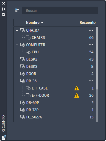 LISTACONTEO: abre la paleta Recuento para ver y administrar los bloques contados.