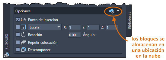 En esta actualización, al utilizar su cuenta de Autodesk Account y sincronizar los bloques con un proveedor de almacenamiento en la nube, los bloques recientes y