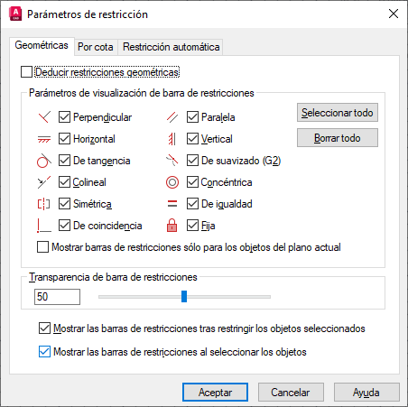 Controla la visualización de las restricciones en las barras de restricciones.