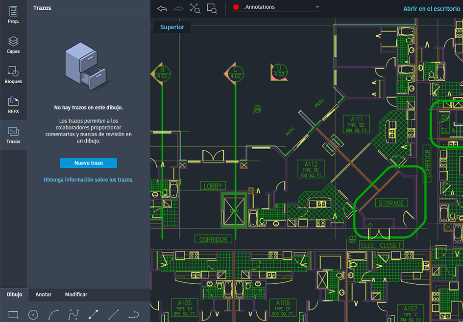 Las funciones varían ligeramente según la versión de AutoCAD utilizada: escritorio (solo en Windows), web o para dispositivos móviles. Aunque puede ver los trazos en las aplicaciones de escritorio, web o para dispositivos móviles, solo puede crear o editar trazos mientras utiliza la versión web y para dispositivos móviles.