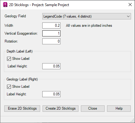 Use this window to generate a two-dimensional sticklog representation of the borehole data in plan view.