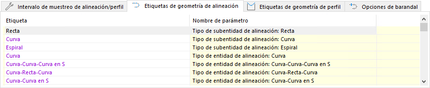 Este conjunto de opciones permite controlar cualquier frase localizable o personalizable para tipos de entidad o subentidad de alineación, tipos de espiral, tipos de restricción y tipos de punto que aparezcan en la interfaz de usuario de Project Explorer, así como en informes, hojas de cálculo y tablas de AutoCAD de salida.