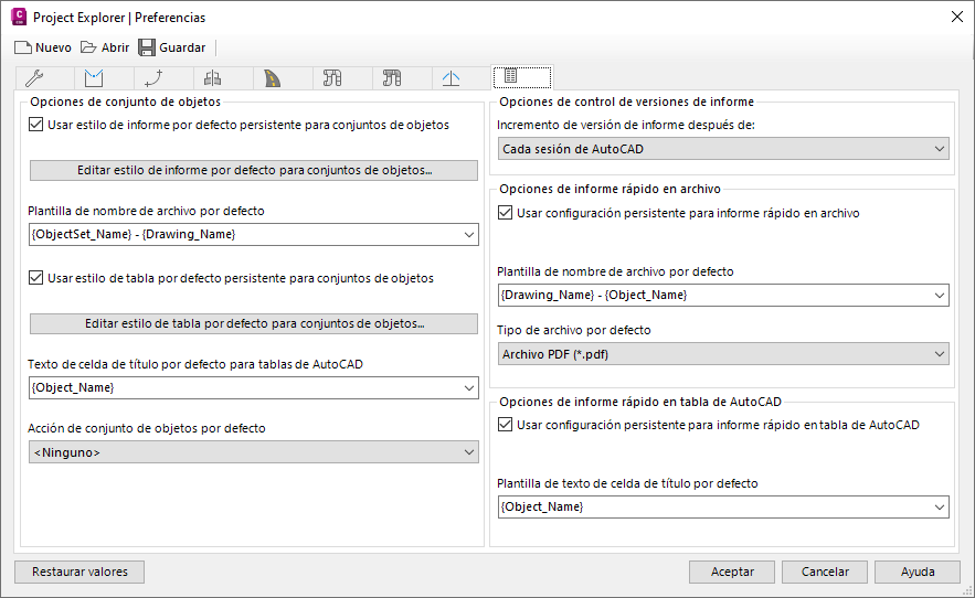 • Cada sesión de AutoCAD: el número de versión se incrementa para el primer informe generado a partir de cada sesión única de AutoCAD. En el resto de los casos, el número de versión del informe permanece sin cambios.