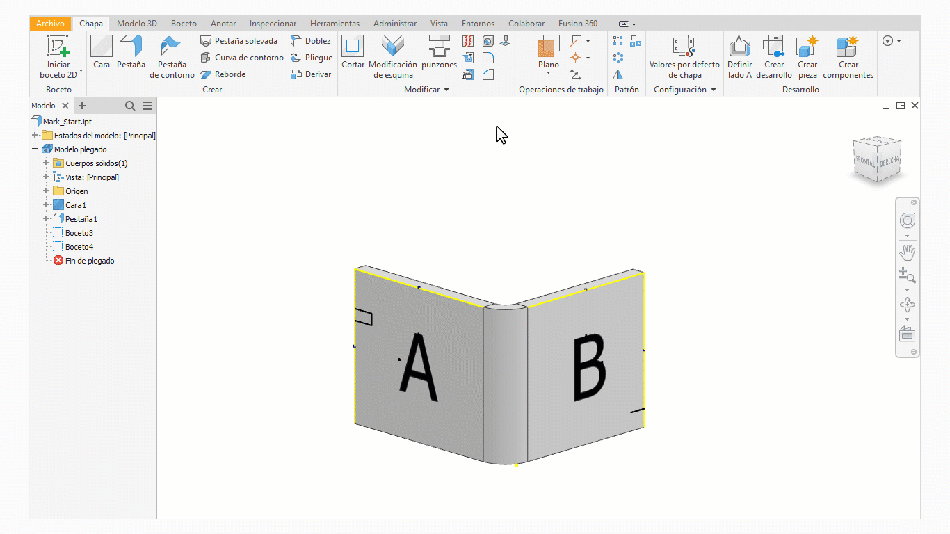 Las operaciones de marca definidas en un desarrollo no se incluyen en las vistas de dibujo o modelo plegado correspondientes al modelo plegado.