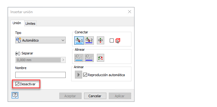 Ahora puede desactivar una unión directamente al editarla o colocarla. Marque la casilla "Desactivar" que se acaba de añadir en el cuadro de diálogo Colocar unión.