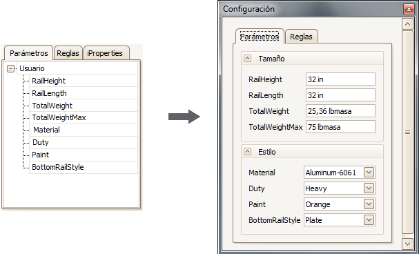 Cree una interfaz de usuario personalizada y conéctela a los parámetros, las propiedades y las reglas de una pieza, un ensamblaje o un dibujo de Inventor.