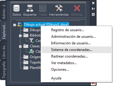 - Haga clic con el botón derecho en la entrada Dibujo actual y seleccione Sistema de coordenadas.