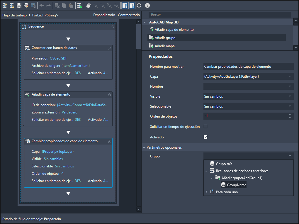 Dado que desea cambiar la propiedad Grupo para cada capa que añada, coloque esta actividad dentro de la actividad ForEach llamada LoopAddLayers.