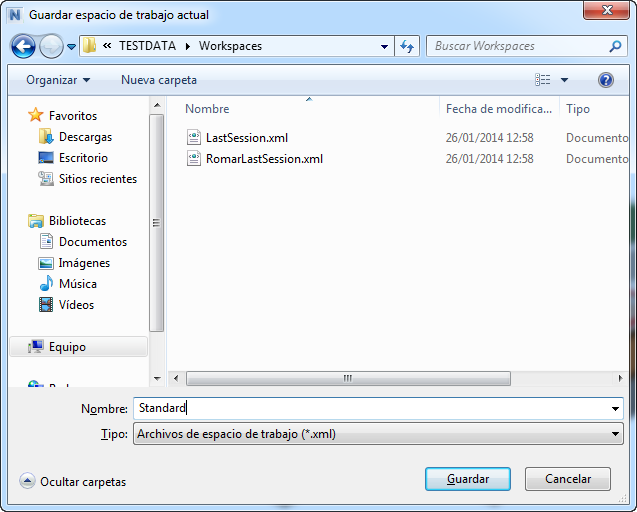 En el cuadro de diálogo Guardar espacio de trabajo actual, escriba el nombre del nuevo espacio de trabajo. Puede seleccionar el nombre de un espacio de trabajo existente si desea sobrescribirlo con la configuración modificada.