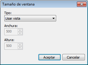 En el cuadro de diálogo Tamaño de ventana, abra la lista desplegable Tipo y seleccione el tipo de tamaño necesario: