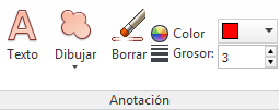 Los controles de Grosor y Color permiten modificar la configuración de las anotaciones. Estos cambios no afectan a los identificadores que se hayan dibujado hasta ahora. Además, el grosor sólo se aplica a las líneas; no afecta al texto de la anotación, que tiene un tamaño y un grosor por defecto que no puede modificarse.