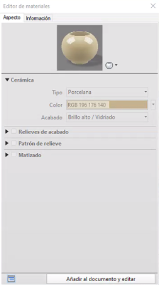 en la parte final de la fila para añadir el material al proyecto y mostrarlo en el Editor de materiales:
