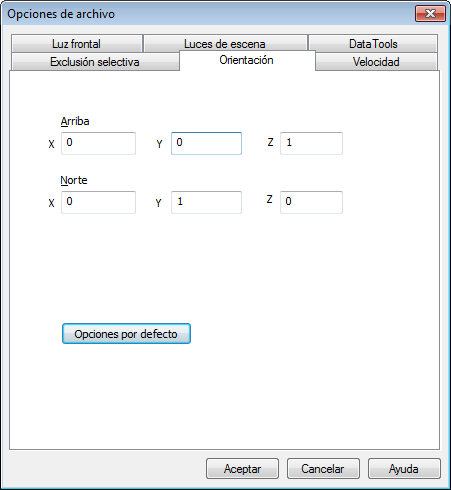 En el cuadro de diálogo Opciones de archivo > ficha Orientación, especifique los valores para ajustar la orientación del modelo.