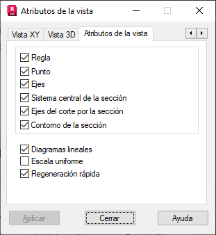 Si la opción está seleccionada (aparece el símbolo ), el elemento se mostrará en la pantalla. Utilice Regeneración rápida para actualizar el mapa de tensiones después de cambiar los parámetros de visualización.