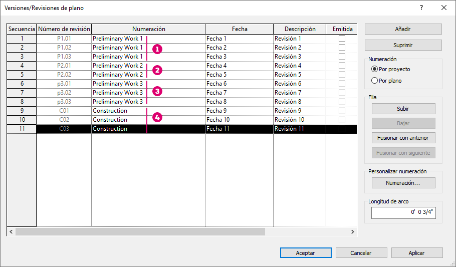 Aprenda a crear y asignar secuencias de numeración personalizadas para las revisiones de los proyectos.