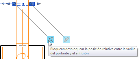 Arrastre el control del extremo de la varilla para ajustar la longitud y la posición de la varilla del portante. Pulse la tecla Mayús mientras arrastra el control para ajustar únicamente la posición de la varilla del portante.