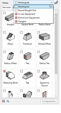 Utilice la opción Activar paleta para especificar una determinada paleta que se utilizará para la conversión. Por ejemplo, esta es una forma de forzar la conversión de un conducto redondo a uno rectangular.