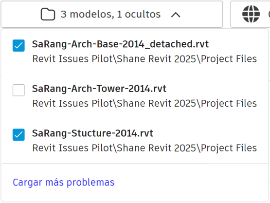 - El botón "Cargar más incidencias" ubicado en la parte inferior de la lista proporciona otra forma de acceder a la ventana Modelos asociados.