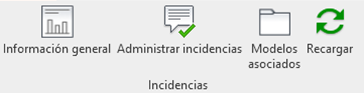- Abra la ventana Modelos asociados desde la cinta de opciones Incidencias.