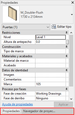 En la imagen siguiente, el Navegador de proyectos y la paleta Propiedades aparecen agrupados. Tenga en cuenta que la paleta Propiedades es la ficha activa.