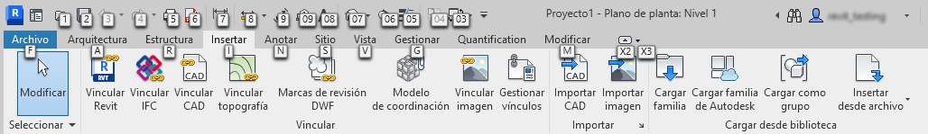 Si una ficha de la cinta de opciones tiene un grupo expandido con herramientas adicionales, escriba su tecla de acceso rápido para visualizar el grupo y ver las teclas de acceso de estas herramientas.