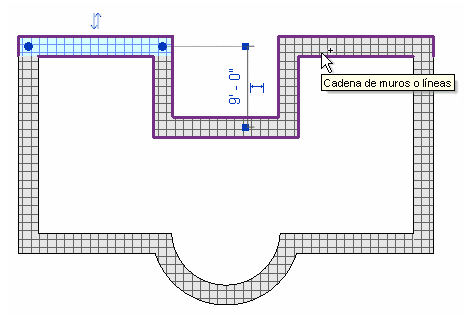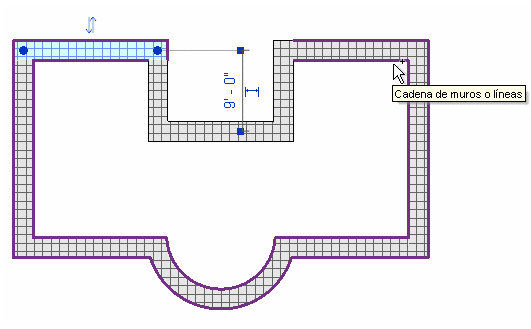 Si hay varios elementos (como muros, líneas o ambos) unidos en una cadena continua, puede seleccionar parte de la cadena.