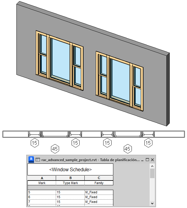 Si una familia anidada contiene varias categorías, cada ejemplar de una familia anidada aparece en su correspondiente tabla de planificación y todos los componentes figuran en una tabla de planificación de multicategoría.