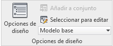 Si en la lista desplegable se muestra Modelo base, significa que no se está editando actualmente ninguna opción de diseño.