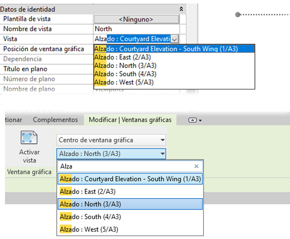 Intercambie la vista actual de un plano directamente desde la lista de vistas.