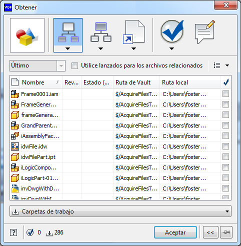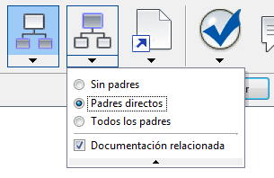 Cuando se descarga o se aplica un check-out a un archivo, puede especificar si alguno de los archivos relacionados también debe descargarse o a especificar si desea aplicarle check-out. El VDF admite relaciones para incluir relaciones hijo, relaciones padre o archivos incorporados a través de los vínculos.