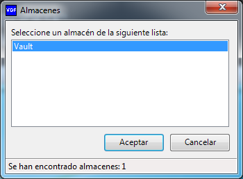 El cuadro de diálogo de inicio de sesión permite al usuario seleccionar entre una lista de almacenes disponibles en un servidor concreto.