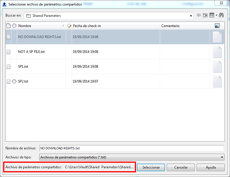 Nota: Vault no confirma la legitimidad del archivo de parámetros compartidos, de modo que si se selecciona un archivo .txt no válido en el almacén, se activará de todos modos como el archivo de parámetros compartidos.