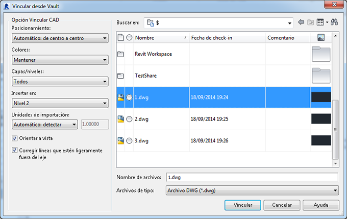 Inserte un archivo DWG almacenado en un almacén en el proyecto de Revit actual.
