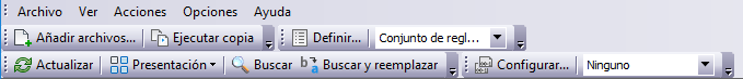La barra de herramientas se compone de cinco menús: Archivo, Ver, Acciones, Opciones y el menú Ayuda.