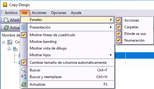 Permite seleccionar los paneles que desea mostrar en el cuadro de diálogo Copiar diseño. |