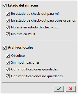 También se puede seleccionar Estado del almacén o Archivos locales para seleccionar todas las opciones de esa categoría.