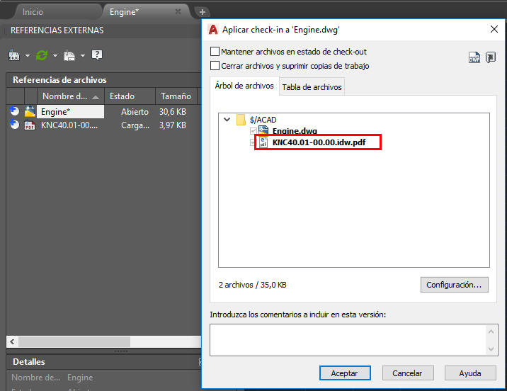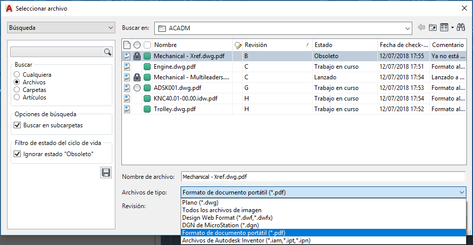 AutoCAD permite adjuntar archivos PDF en los dibujos como calco subyacente. Sin embargo, Vault no era compatible con los archivos PDF adjuntos durante el check-in en Vault hasta ahora.