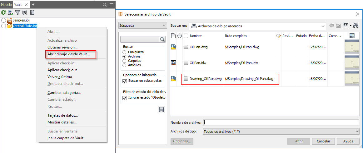 Abrir el dibujo de un diseño desde Vault es una tarea manual de varios pasos. Una de las solicitudes más frecuentes de Idea Station es abrir en Vault el dibujo del correspondiente archivo de diseño, ya que en Vault se identifica y almacena la correspondencia entre documentos de diseño.