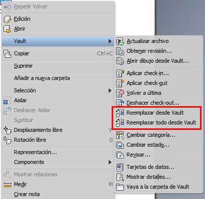 Con el uso de los nuevos comandos "Reemplazar desde Vault” y “Reemplazar todo desde Vault" puede ir directamente a Vault, buscar los componentes necesarios y realizar el reemplazo.