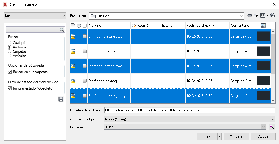 - Ahora se pueden seleccionar varios archivos .dwg al utilizar Asociar desde Vault al asociar referencias externas.