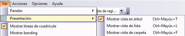 Las vistas de lista y de carpeta ahora están disponible en la rejilla principal. Puede cambiar fácilmente entre Vista de lista, Vista de árbol y Vista de carpeta, y aplicar el filtrado de columnas en la vista de lista.