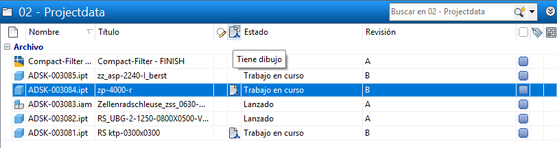 La nueva propiedad "Tiene dibujo" permite saber si un modelo tiene uno o más dibujos asociados. Al buscar esta propiedad, puede filtrar todos los modelos de un proyecto que no tienen un dibujo. En segundo lugar, puede aprovechar la transición al ciclo de vida de check-in de la propiedad para garantizar que los modelos solo se lanzan si tienen dibujos asociados. Finalmente, puede identificar y filtrar en el explorador de Inventor los componentes sin un dibujo asociado.
