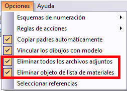 Es posible eliminar objetos de lista de materiales, así como todos los archivos asociados de modelos y documentos de diseño.