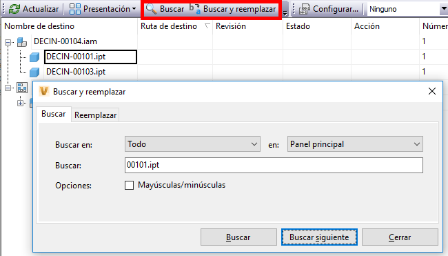 Puede realizar operaciones de búsqueda y reemplazo en la rejilla principal.