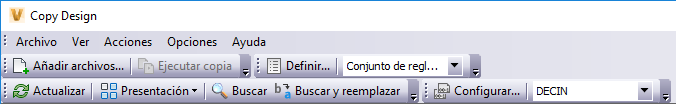 Copiar diseño ahora es un cuadro de diálogo no modal con una barra de herramientas que puede permanecer abierto mientras se utiliza Vault Client para introducir otros comandos y añadir los archivos que desea copiar.